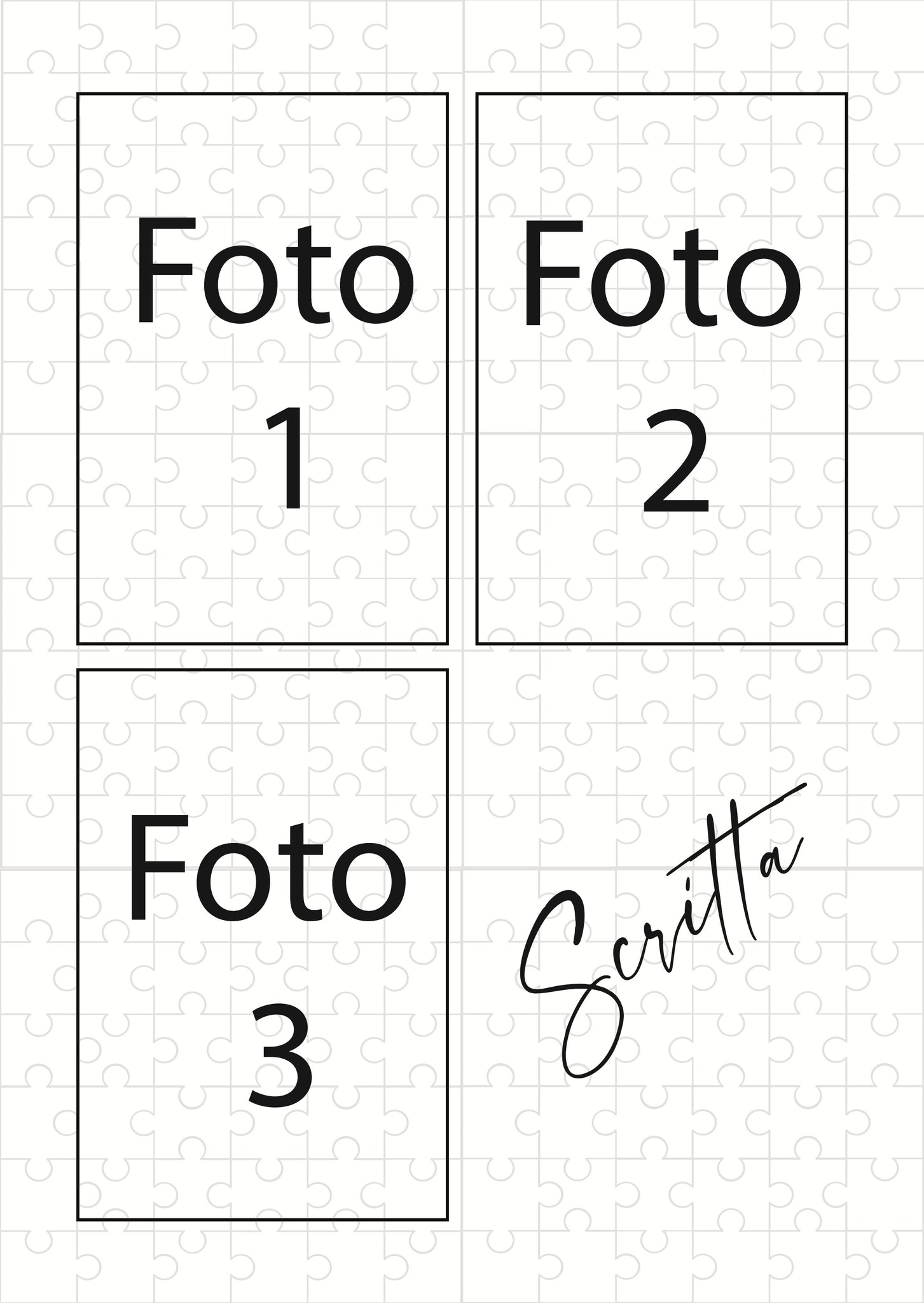 - Puzzle personalizzato "Collage con 3 foto e scritta" in formato A4 (96 pezzi) o formato A3 (192 pezzi)