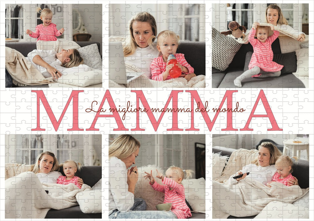 - Puzzle personalizzato con 6 foto, e scritta Mamma (La migliore mamma del mondo) in formato A4 (96 pezzi) o formato A3 (192 pezzi)