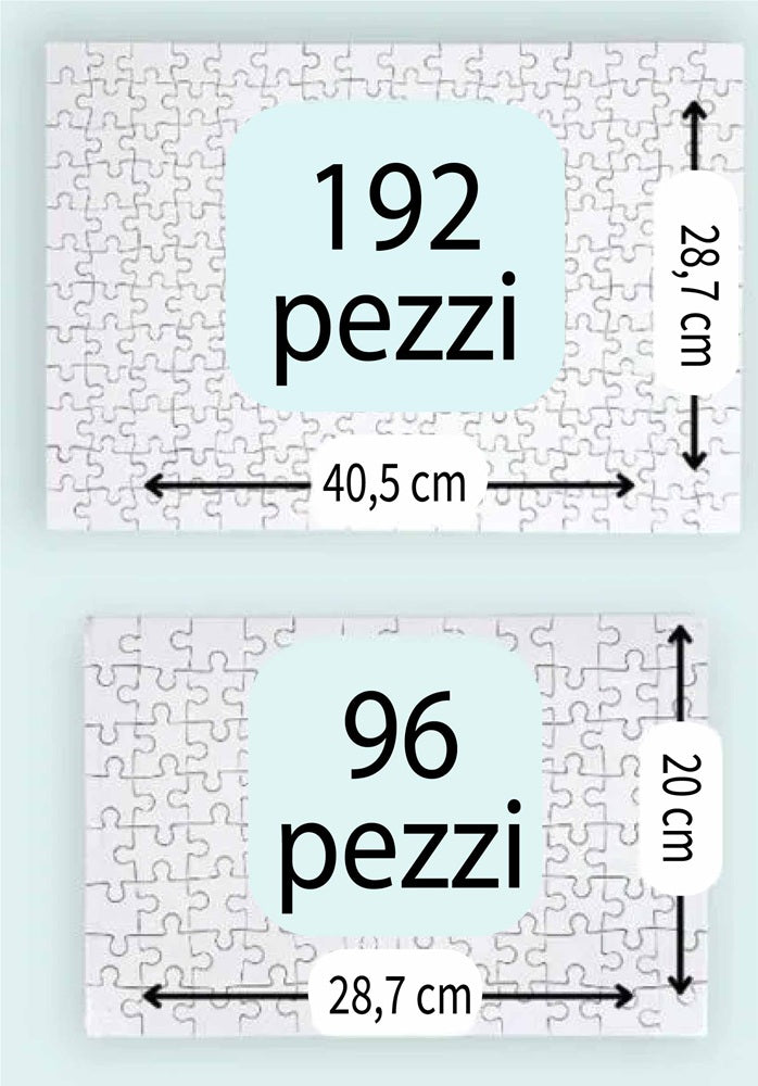 • Puzzle personalizzato con foto in formato A4 (96 pezzi) o formato A3 (192 pezzi)
